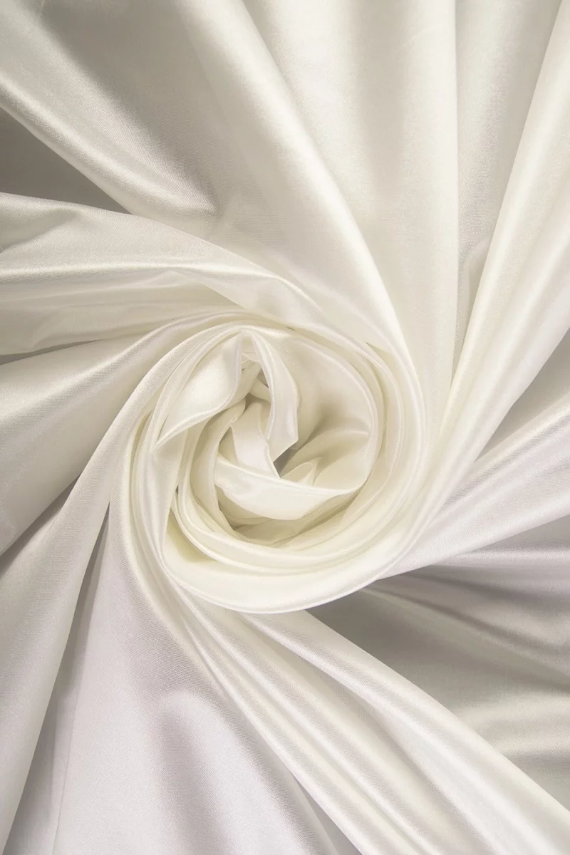 Le taffetas écru fin est un tissu lisse, brillant et légèrement rigide. Parfait pour les tenues formelles élégantes - robes, jupes. Il convient également comme tissu pour la décoration intérieure - pour les rideaux, les oreillers, etc.