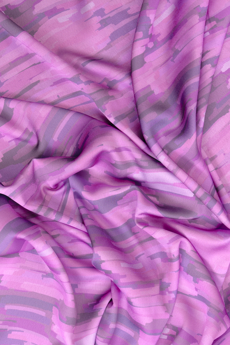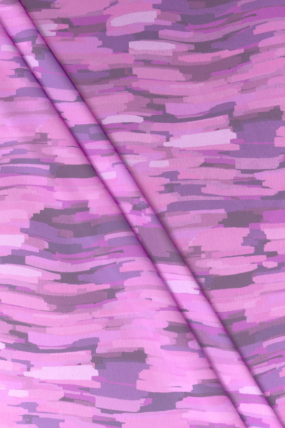 Satin de polyester italien de qualité supérieure avec un motif horizontal fantaisiste rappelant les coups de pinceau. L’ensemble est maintenu dans des couleurs très à la mode de rose, de brun et de diverses nuances de violet. Le tissu est légèrement élastique, fin mais opaque avec un éclat satiné. Une proposition idéale pour les personnes qui aiment les motifs originaux dans les couleurs les plus à la mode.