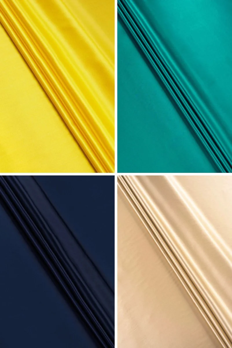 Le satin de soie est un tissu dense et léger à surface plane, réalisé en tissage satiné. Un autre avantage est sa douceur et sa durabilité, ainsi que le fait qu’il s’ajuste très bien, ne se laisse pas transparaître et est agréable au toucher. D’un côté, il est mat, et de l’autre, il est noblement brillant. Il peut être utilisé pour évoquer des robes légères, des blouses délicates, des jupes, des foulards, des foulards.