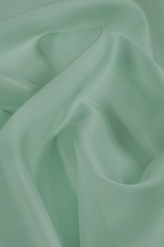 Tissu italien 100% organza de soie de couleur sauge. L’organza de soie naturel est un tissu fin, transparent mais rigide avec une brillance délicate caractéristique des tissus en soie. Parfait pour coudre une robe, un chemisier, une chemise, une jupe.
