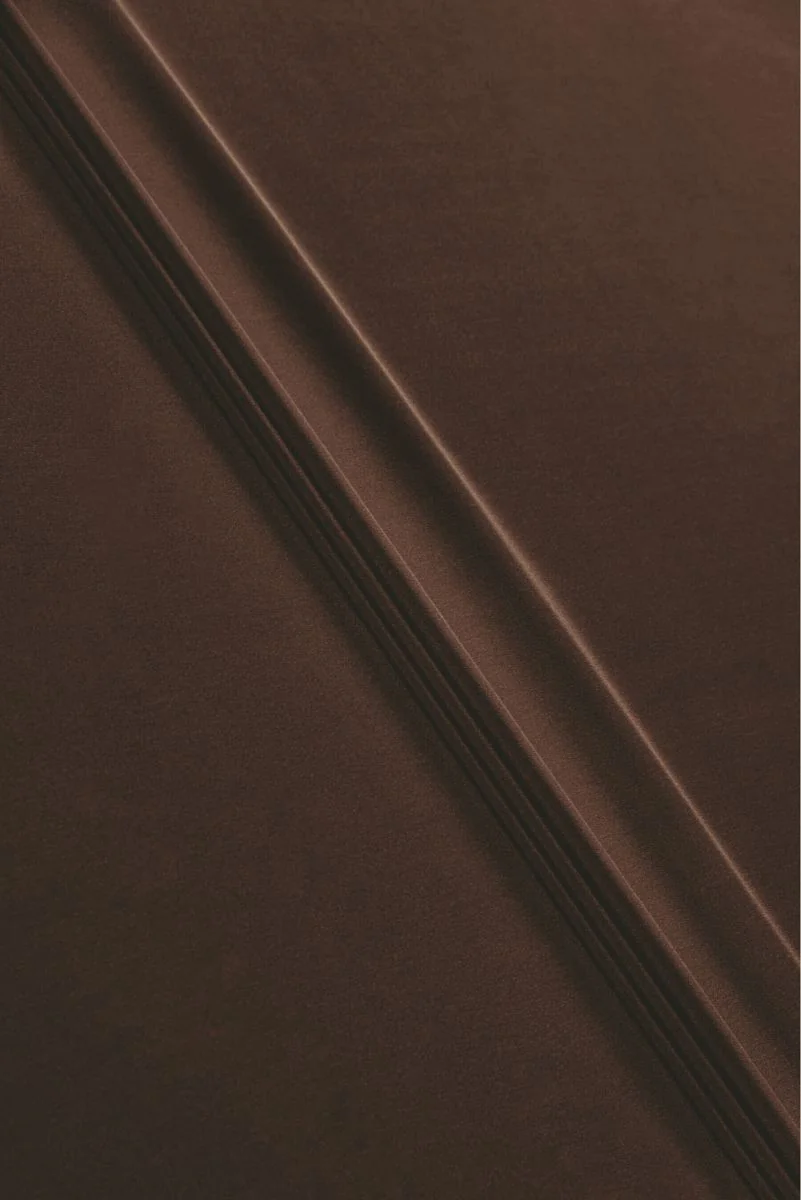 Tissu italien en soie et acétate de couleur marron. Le matériau est fin mais opaque, inélastique avec un tissage lisse et mat. Il est parfait pour coudre un chemisier, une robe, une jupe ou une écharpe aérés.