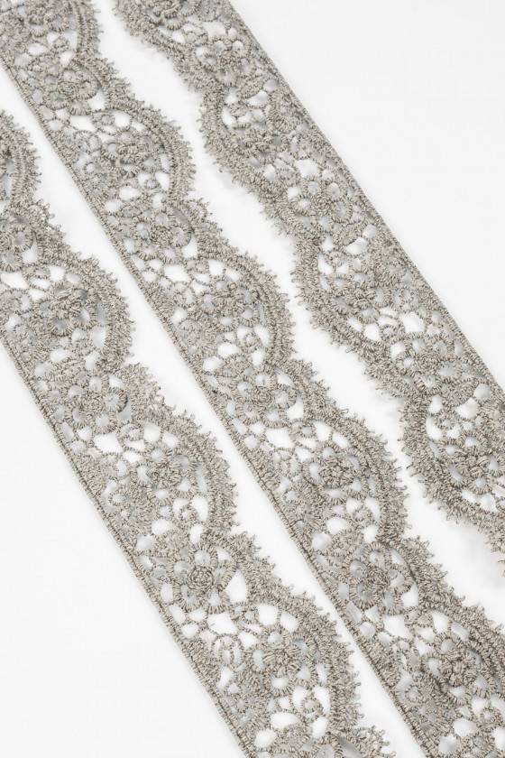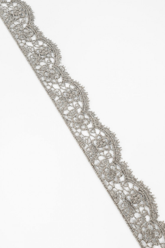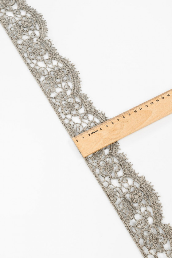 Ruban de mercerie - laine avec fil de lurex. Fini avec une dent d’un côté, de 7 cm de large.