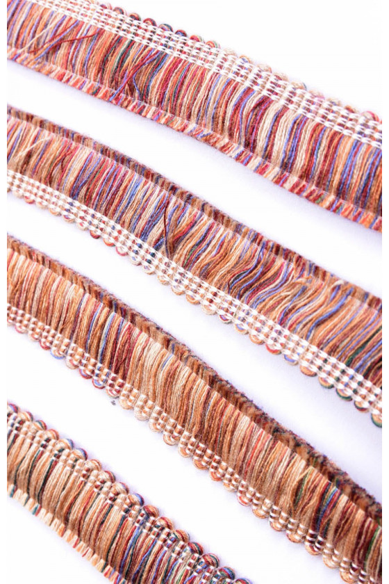 Un magnifique ruban multicolore conçu pour les tissus Chanel. Le ruban peut être coupé d’un côté. Une fois coupé, il formera ce que l’on appelle des glands.