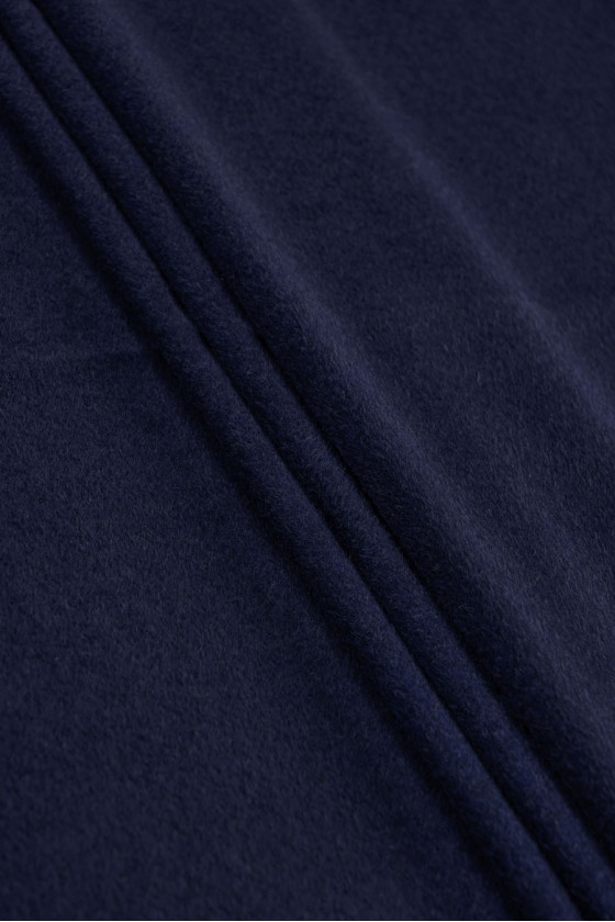Tissu italien à poils courts en bleu marine. Tissé à partir de laine naturelle et d’alpaga.