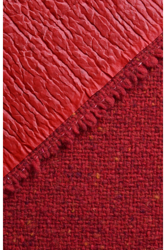 Tissu de manteau italien tissé à partir de laine 100 % naturelle de couleur rouge - le tissu est collé avec une membrane coupe-vent. Les tissus en laine sont idéaux pour les vêtements d’extérieur (manteau, veste, gilet) car ils réchauffent et permettent en même temps à la peau de respirer.