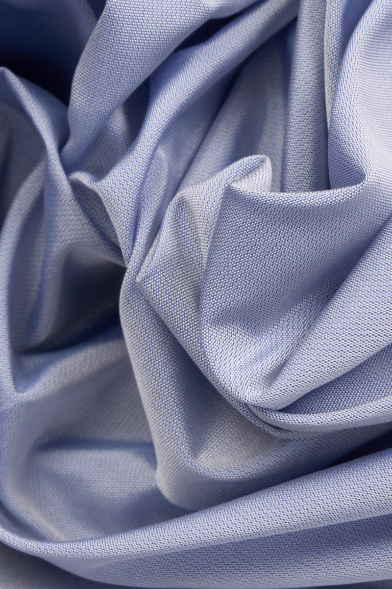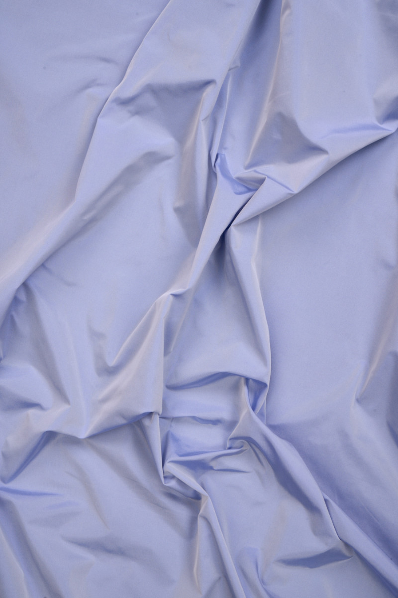 Tissu italien en taffetas de polyester tissé à partir de deux couleurs de fils - bleu bleuet et argent clair, créant un effet bicolore. Le taffetas est un tissu fin mais rigide, fini avec une brillance délicate, non élastique. Parfait pour coudre une robe, un chemisier, une chemise, une jupe.