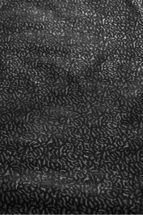 Italien, tissu en viscose original en noir et argent avec un imprimé animalier. Le tissu est légèrement rigide, serré, travaille en douceur