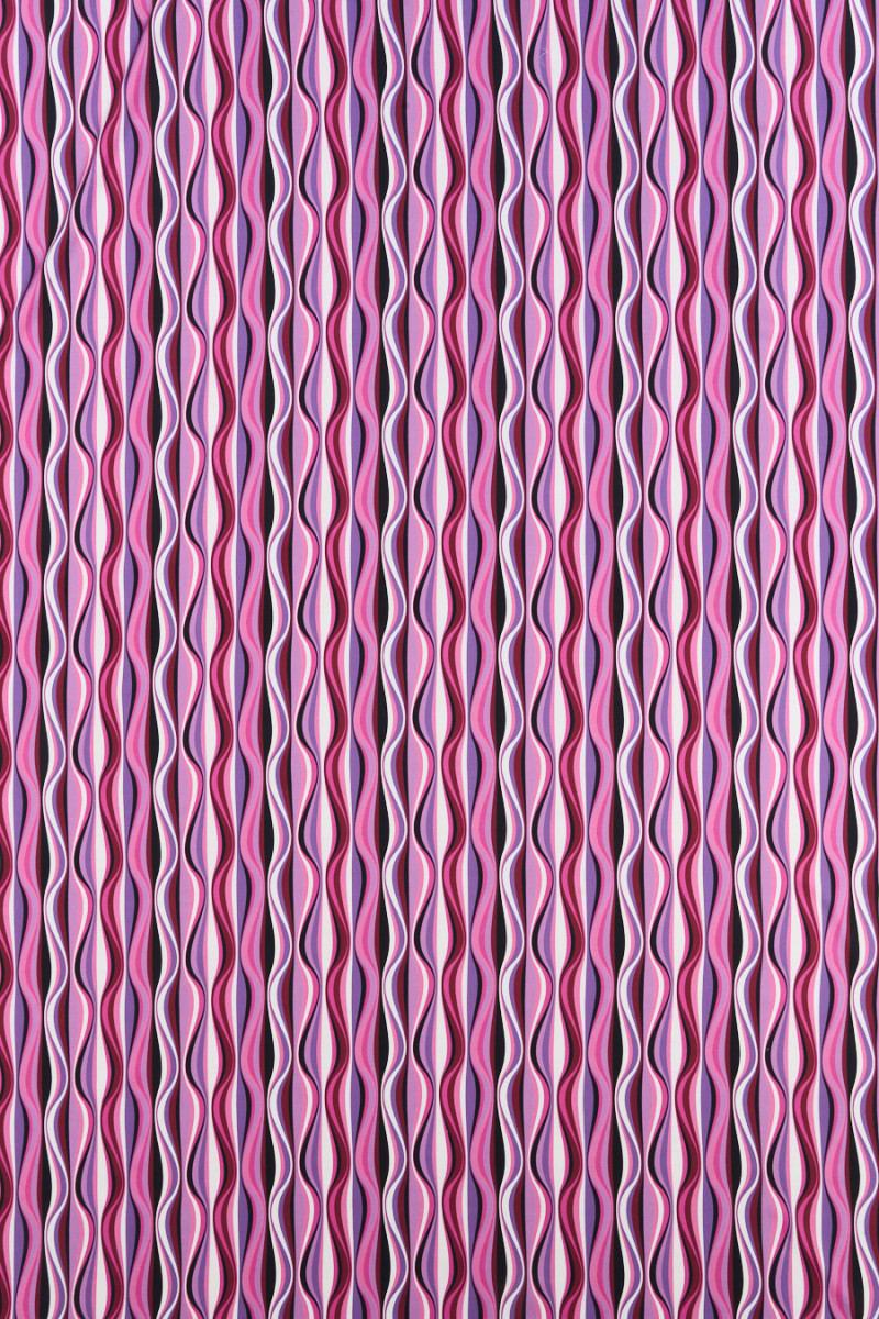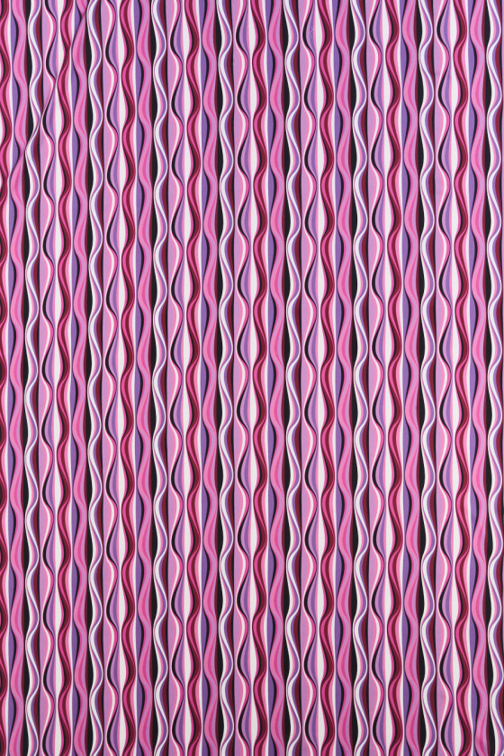 Tissu italien 100% viscose avec un motif de vagues dans les couleurs rose, violet, crème et noir. Le tissu est doux, mat, fluide, opaque et très agréable au toucher. Une proposition colorée à partir de laquelle vous pouvez coudre une robe, une jupe, un chemisier ou un short.