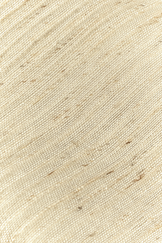 Tissu en viscose original avec l’ajout de lin et de polyamide de couleur écru et beige mélangés. Tissu à la texture ondulée (pli irrégulier, fin) et à l’éclat délicat.